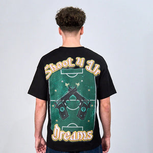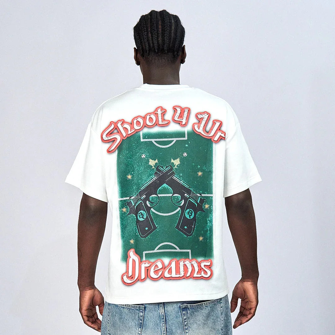This limited streetwear drop features oversized T-shirts and boxy fits crafted from heavyweight premium cotton. Bold graphic designs reference football culture, urban struggle, and the pursuit of dreams. With distressed prints, symbolic graphics, and statement fits, the Shoot4UrDreams™ Collection is made for a new generation of streetwear.